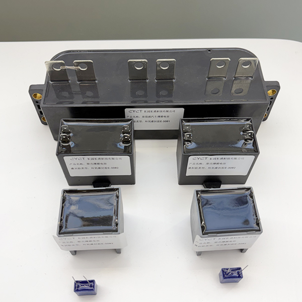 Los condensadores de película se utilizan ampliamente en electrónica de potencia y requieren encapsulado para evitar daños por vibración y contaminación ambiental.